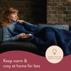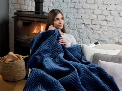 Dreamland Deluxe Velvet Royal Blue Heated Throw – Large