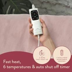 Cocoon yourself in cloud-like comfort with our velvety plush warming Pink throw. Super-sized and seriously soft, the strokable texture makes it the perfect solo or shared snuggle companion. And when you're not requiring the warmth and wellbeing benefits, it doubles up as a stylish living room accessory. 5 minute fast heat up, 6 temperature settings with auto shut off timer. Machine washable and tumble dryer safe; simply detach the digital control. Comes with reusable storage bag and 2 year guarantee. Energy saving, costing from only 1p to run.