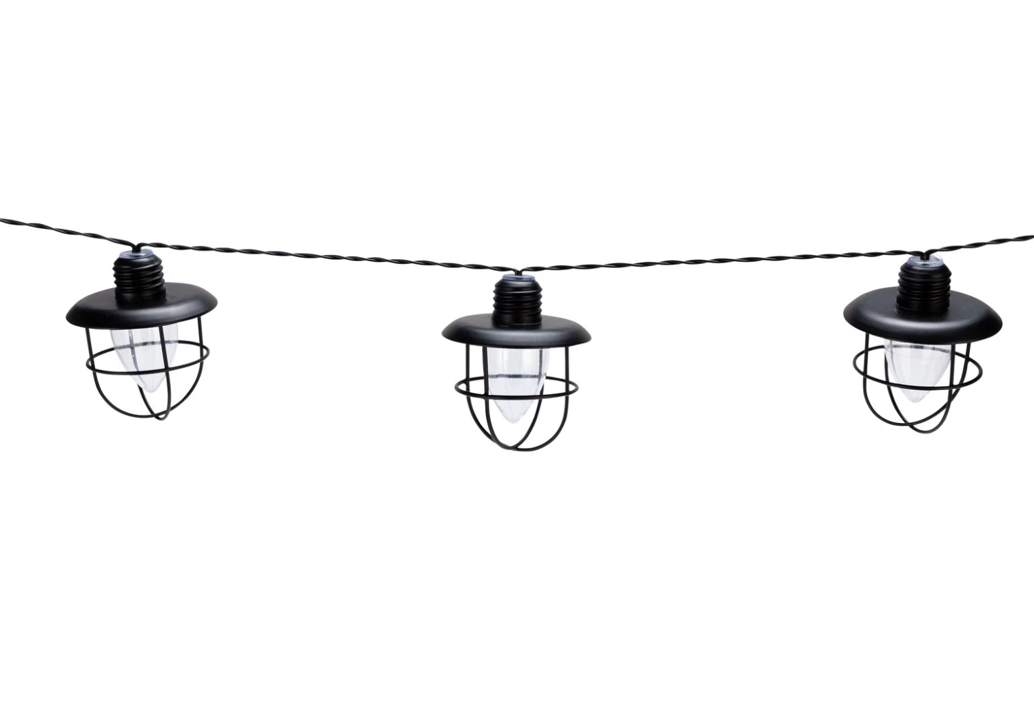 Light up the party with these striking industrial chic solar lights. They're so on trend. 10 tulip shaped bulbs are each encased in a vintage style cage. Festoon them in the foliage you're your outdoor furniture or string them along the garden fence. Get creative. Just make sure the solar panels can soak up the sun during the day, then they'll bathe your guests in a soft glow all evening. 100% environmentally friendly, no wiring required. With 7 hours of light out of a fully charged battery, you can party on into the night.