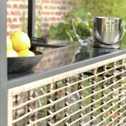 Club Tropicana, drinks are free. That's because it's right here in your garden. Our Beach Bar Gazebo brings the fun of holidays in the sun to your outdoor space. It hits all the right interiors trends; rattan, natural materials, artisan and ethnically inspired, bringing a dose of stylish fun. Two cushioned rattan bar stools sit at a glass bar built into a sturdy steel frame with bamboo detailing and a grass-style roof.