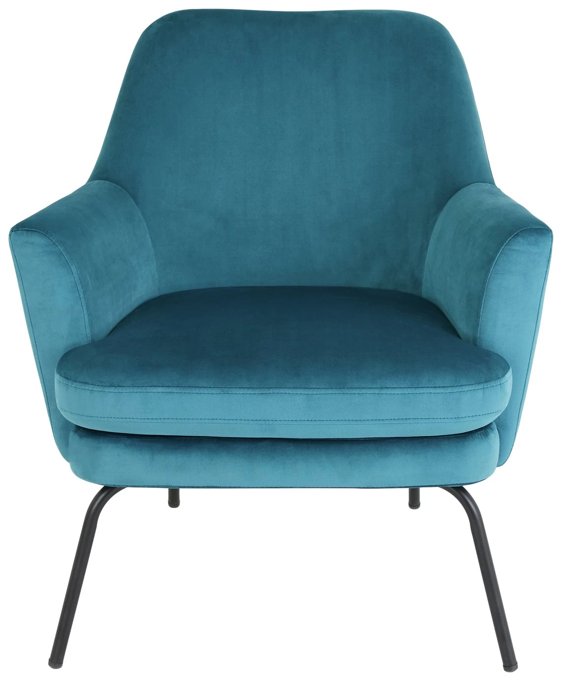 The Celine velvet accent chair with black metal legs combines sumptuous padding and generous proportions with a lighter-than-air look. A high reclined back, gently rolled arms and a foam-filled seat cushion ensure this chair is as comfortable as it appears. Exclusive to Habitat and available in a choice of colours, the Celine chair is upholstered in durable polyester velvet and its seat cushion has piping to maintain its clean edge.