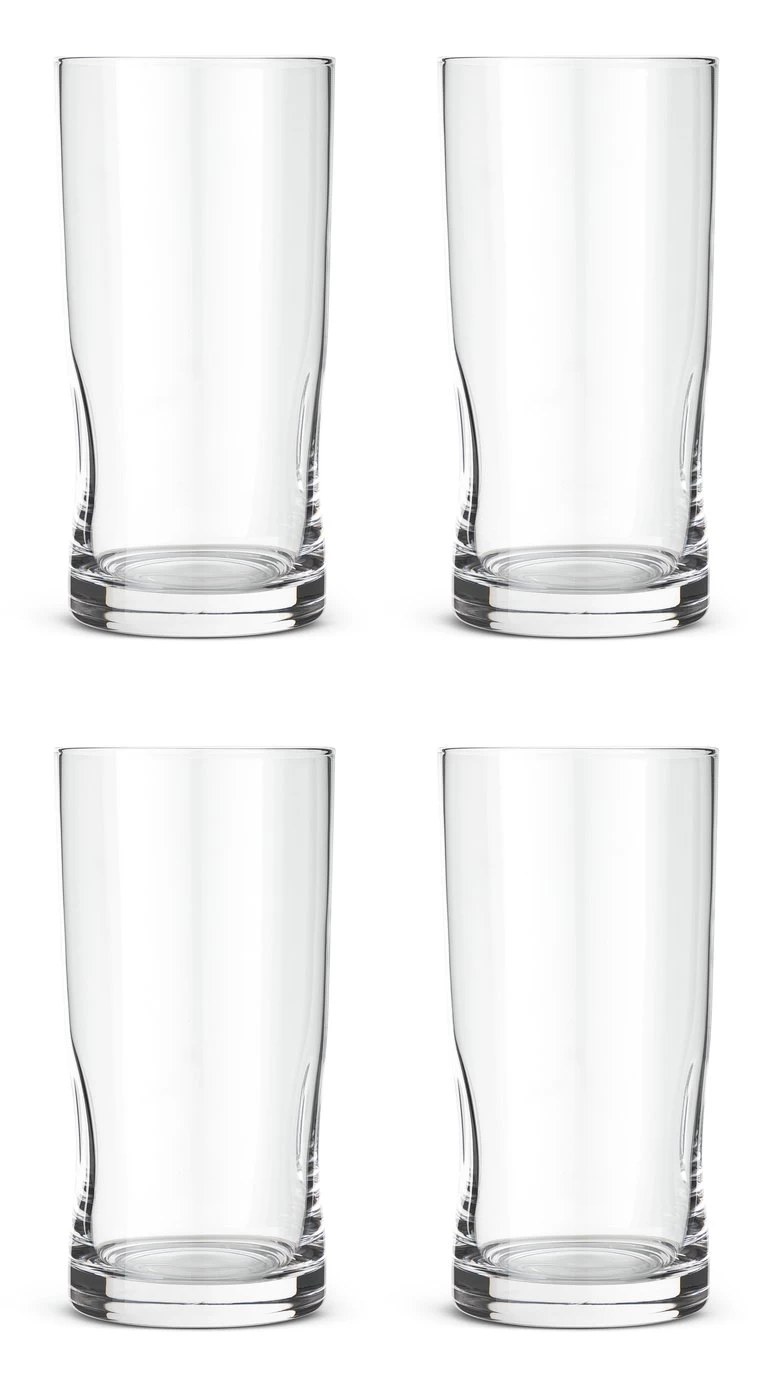 These 4 clear hi ball glasses will add some understated style to your collection. We've added a twist to a simple silhouette with the pinched effect at the base. Perfect for fizzy drinks, juice or a classic cocktail. A must have choice for any home bar. Cheers!