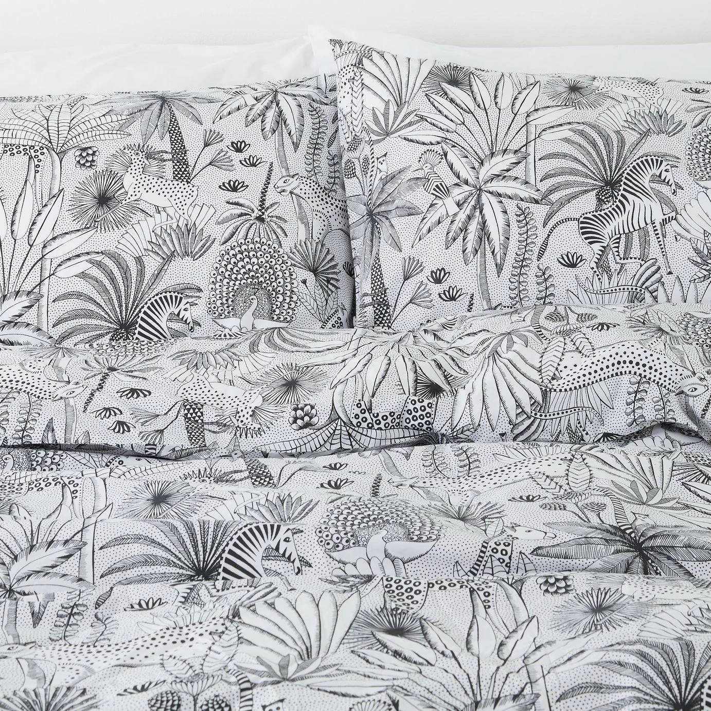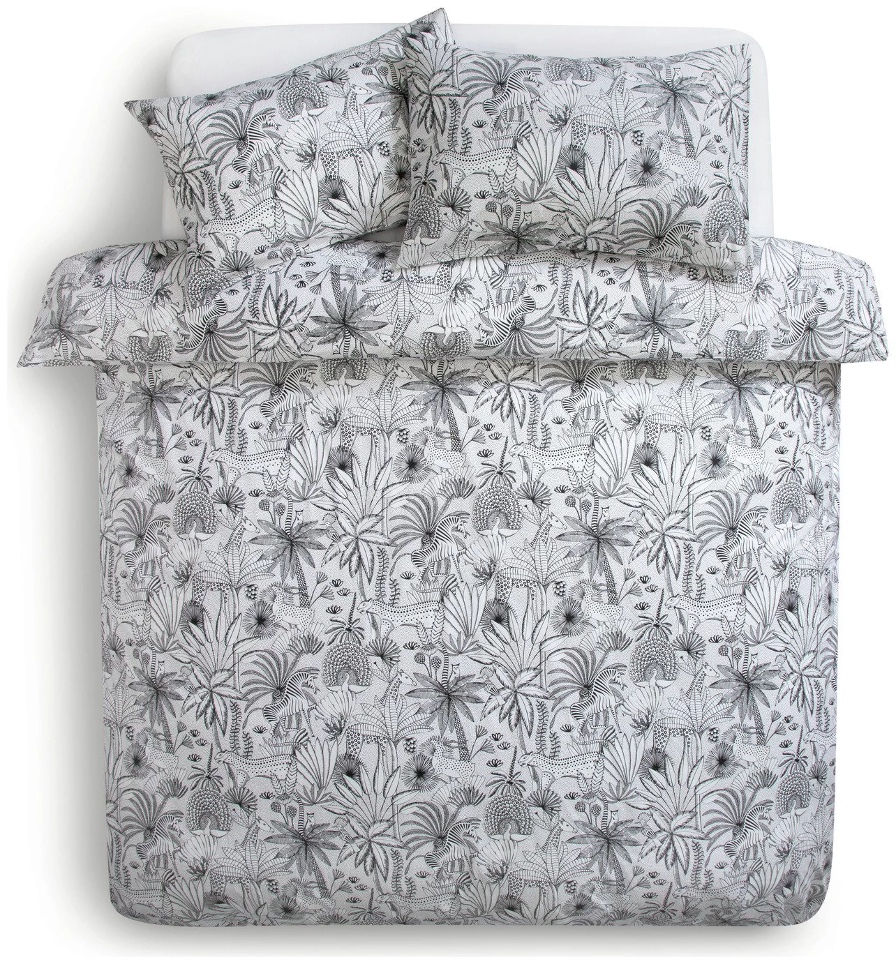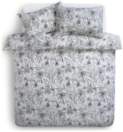 Dreaming of distant lands. Our Jungle bedlinens feature a black and white print of jungle plants for a quirky, chic look. 100% cotton and a 180-thread count makes them cosy to sink down into at the end of the day. Jungle fits with any decor style from natural to monochrome to Scandi. And this great value single set comes with 1 pillowcase and a duvet cover.