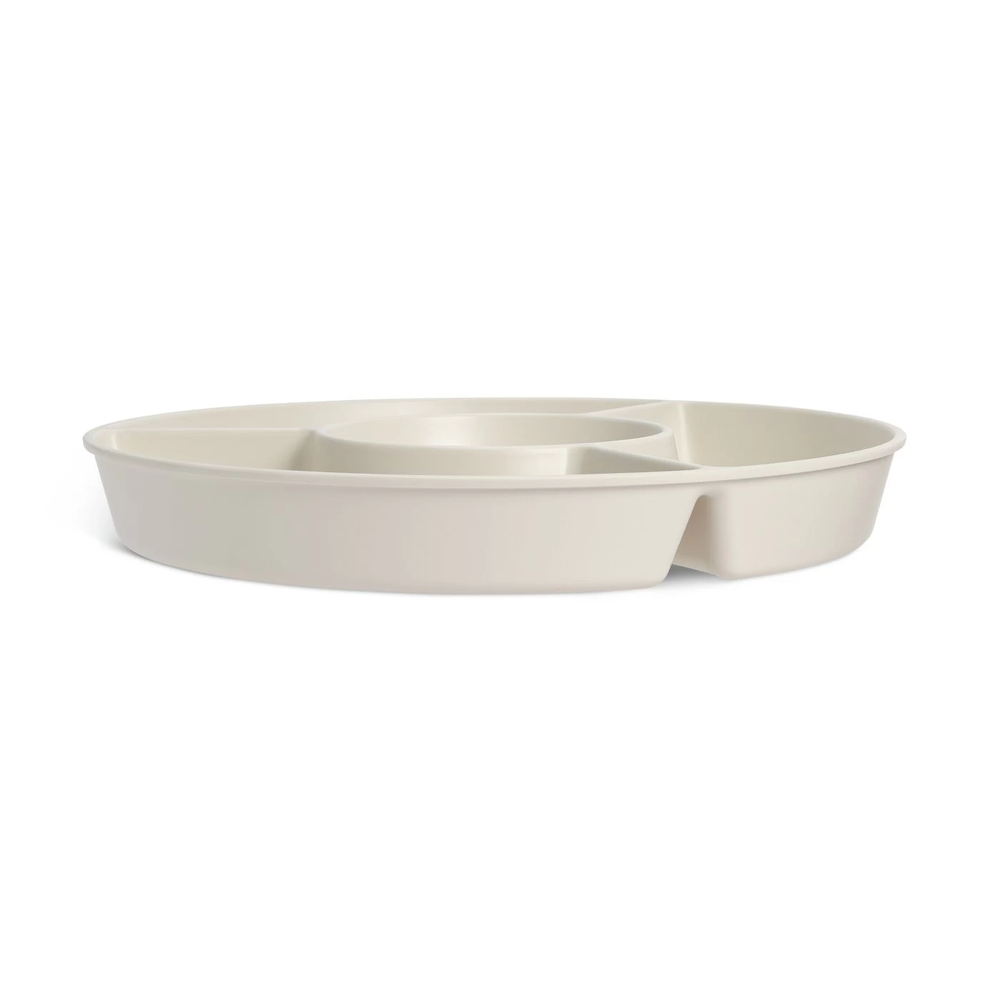 Divided Server with 4 appetizer plates that are held in the center for easy storage and serving. Durable and Ideal for indoor or outdoor entertaining. Server can be used without plates for an additional dip placement option. BPA Free.