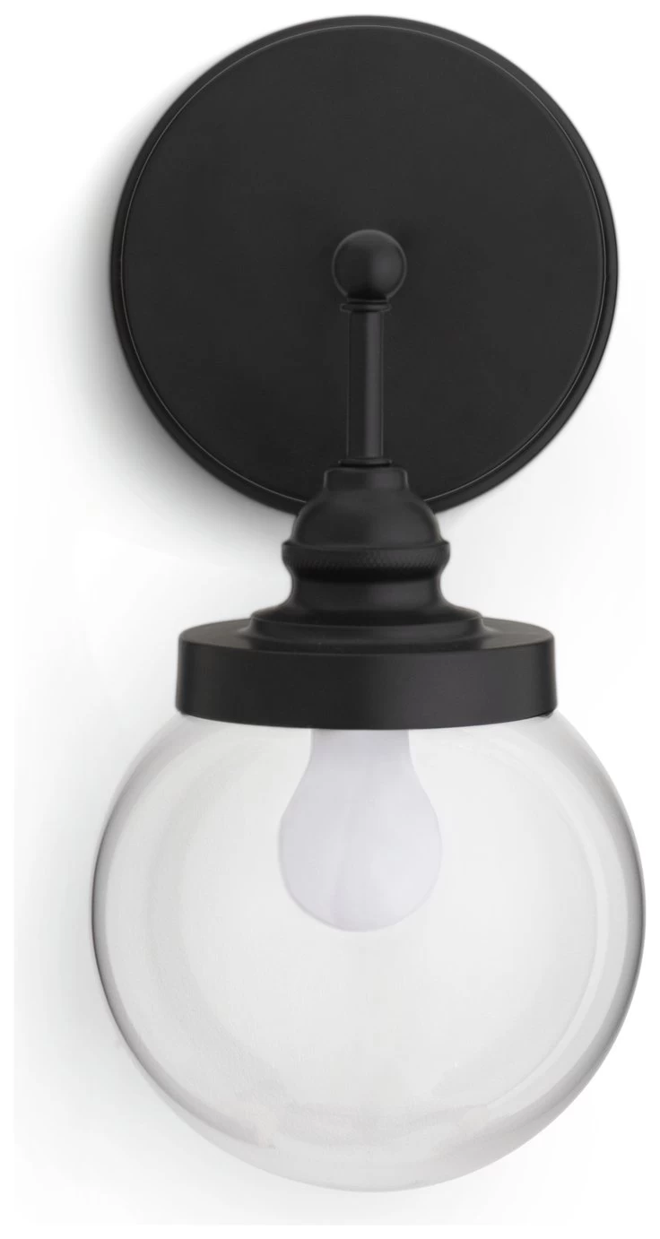Switch on to some super stark style wall light. A modern take on a classic design. The clear glass globe suspended from the black metal frame has a minimalist, industrial feel. Bathroom friendly too. So, pop one either side of a wall mirror, stand back, and admire.