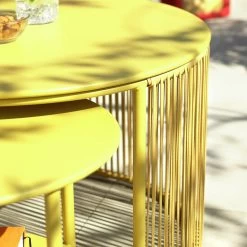 We love clever design, don't you? And this Ipanema coffee table set is clever and showy. The circular yellow metal table is contemporary cool. But get this, it comes with a smaller version. A mini me that neatly fits underneath. Call it smart storage. Bring both out when you've a crowd round. Other times keep it safely tucked away. Ideal for a patio. It's eye-catching and practically perfect. Comes fully assembled so that's easy too. Just put it outside or pop it in the conservatory and you're good to go.