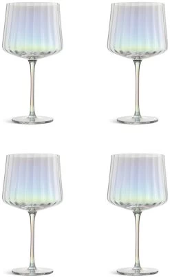 Irresistibly iridescent. Gentle pastel hues shimmering on a classic fluted design give these 4 gin glasses the instant wow factor. While long elegant stems live up to the sense of occasion. Absolutely gorgeous. Deliciously distinctive they'll put a luxe lustre on any tipple. Chin, chin.