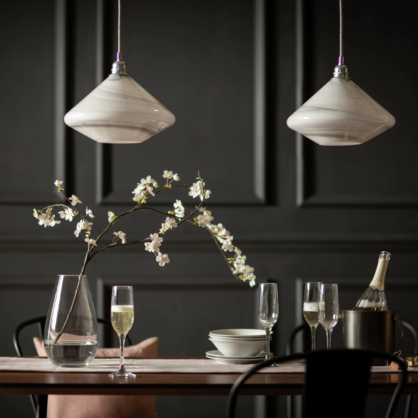 A drop of luxe lighting. With its gently curved silhouette, marble exterior and matt black detailing, there's a lot to love about Lati. And each one is subtly unique. The marbling effect is applied to the glass by hand, so no 2 shades will share the exact pattern. Very cool. Hang it low over your dining table or breakfast bar for a touch of laidback glamour.