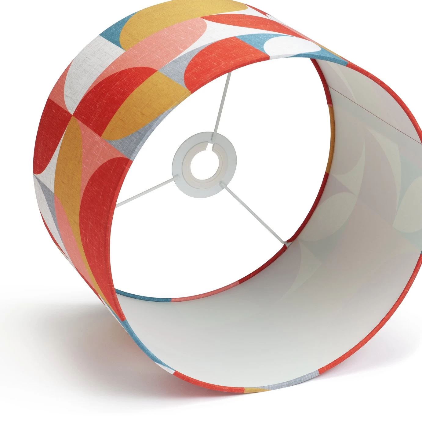 All hail, mid-century design. The era that gave us Danish chairs and Japanese coffee tables comes alive in the geometric patterns of this light weight printed fabric shade. Hues of pink, mustard, indigo and white create a cool palate that's bang on trend this season. Place it atop any lamp you choose and pairwith yourfavouritevintage finds or new pieces. Instantly creates a stylish with a nod to the heyday of interior design.