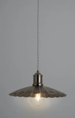 One pretty pewter pendant. Our Pixie ceiling light is just the right mix of dainty and industrial. Smooth metal gives an antique feel. While the shallow scalloped shade really lets an exposed Edison bulb shine. Great for low ceilings, or you can lengthen its twisted cord to accent a table or kitchen island. What a gorgeous way to glow.