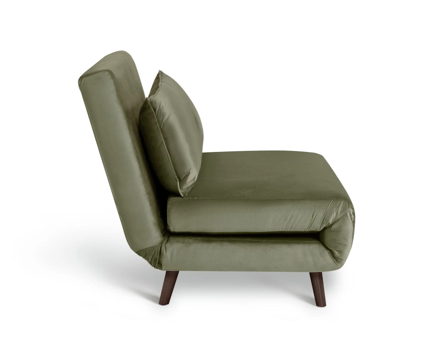 A spare bed for two? It's Roma to the rescue. In smooth sage our modern chair bed is a smart way to be prepared. Its day job is being a big comfy chair. If it's on the night shift, it turns into a comfy compact double bed. Clever. Either way the plump stuffed foam cushions are great for relaxing. And the long back cushion with single button detail adds to its contemporary style. Arrives complete, simply pop on the feet.