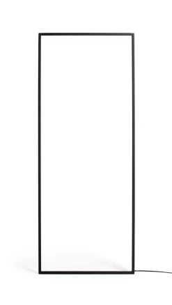 Step right in. This cool retro frame is a marvellous metallic feature. Lit behind by warm, white LED lights, it looks cool day or night. Lean it against a dark bedroom wall, press the footswitch and ta-dah, the stage is set for a dramatic statement. Standing nearly 5ft tall the jet black brushed metal frame sits beautifully in an industrial or minimalist decor. Pop it in the garden at parties to create a fun focal point too. What are you waiting for?