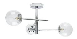 Look up at an icon. Our 3-way flush ceiling light is a celebration of the classic Sputnik design blended with contemporary form. Housing energy-saving LED bulbs, the clear glass globes are suspended from a staggered, polished chrome metal frame. A shining example of modern meets retro.