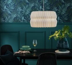Glowingly gorgeous. Inspired by Japanese design, our Tamora white paper shade has a striking origami like structure that really catches the eye. Place in the living room or bedroom for a soft, warm glow and a cosy atmosphere. So calming and serene and this easy to fit lamp shade requires minimal assembly. No stress, just simplicity.