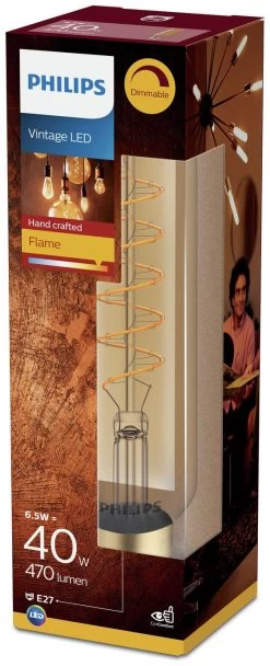 LED lamp, vintage edition. LED lamp for line voltage. Mercury-free lamp. Lifetime: up to 15,000 h. Beam angle: up to 360. Very low energy consumption. Instant 100 % light, no warm-up time. Can be easily fitted instead of ordinary light bulbs. Lamp with innovative LED "filament" technology. Areas of application: Domestic applications. General illumination. Outdoor use in outdoor luminaires only (minimum IP65). Perfect for decorative installations.