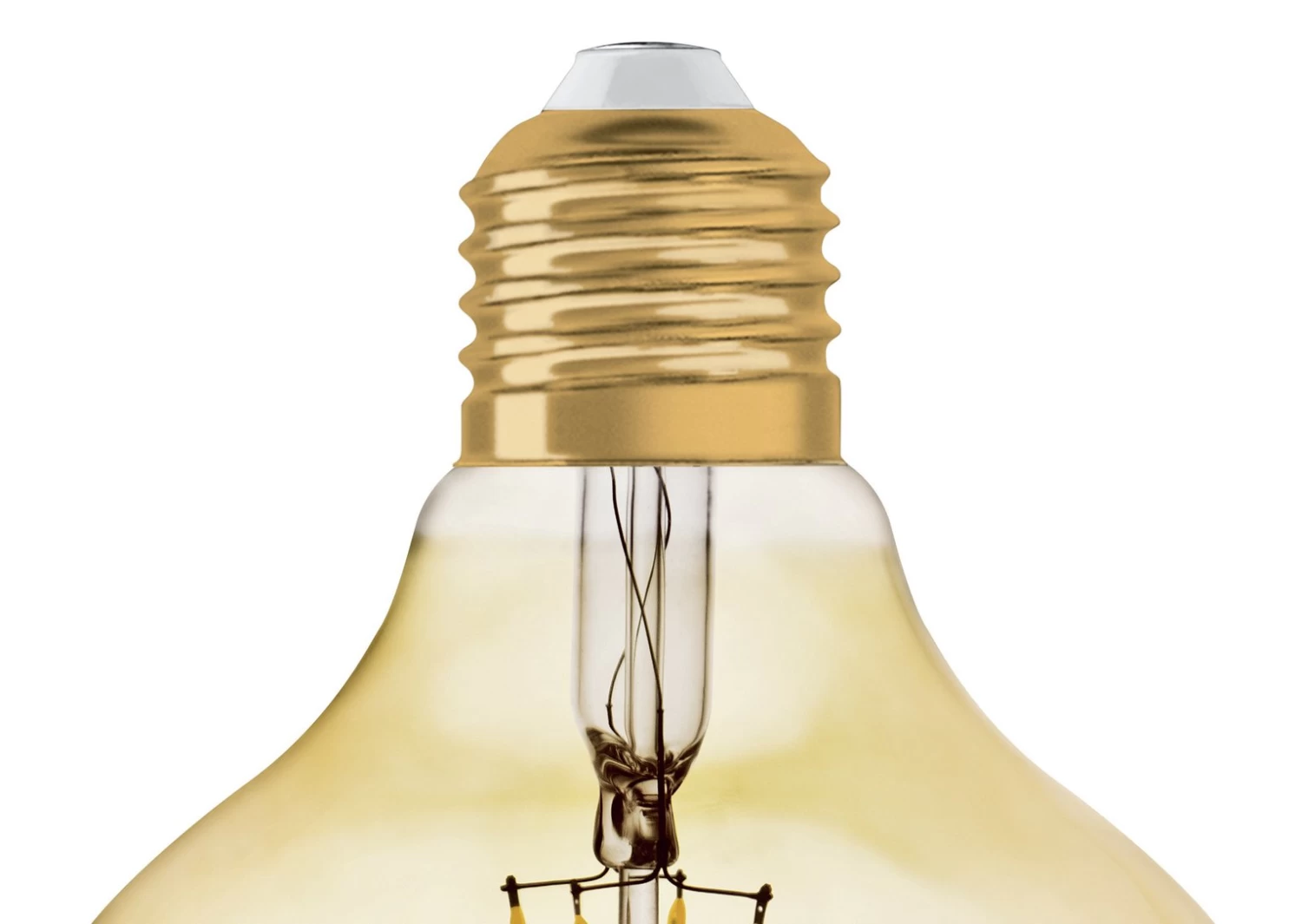 LED lamp, vintage edition. LED lamp for line voltage. Mercury-free lamp. Lifetime: up to 15,000 h. Beam angle: up to 360. Very low energy consumption. Instant 100 % light, no warm-up time. Can be easily fitted instead of ordinary light bulbs. Lamp with innovative LED "filament" technology. Areas of application: Domestic applications. General illumination. Outdoor use in outdoor luminaires only (minimum IP65). Perfect for decorative installations.