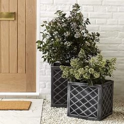 Perfect for most gardens this set of 32cm and 38cm Lazio Square Planters is great for adding some beauty to your outside areas. Hand finished to give a genuine metal look these planters are lightweight and easy to carry so you can move them around easily. Weather resistant. Made in the UK.