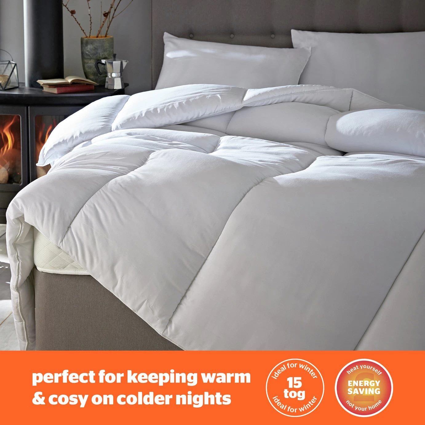 The Silentnight Warm & Cosy duvet will help to keep you warm and comfortable for a relaxing and restful night's sleep. The duvet is generously filled with hollowfibre which results in a soft, snuggly and comforting duvet that cocoons around you. The 15 tog Warm & Cosy duvet is ideal for cooler months and will prevent you from becoming cold in bed. The duvet is covered in microfibre that is soft to the touch to offer exceptional comfort throughout the night.