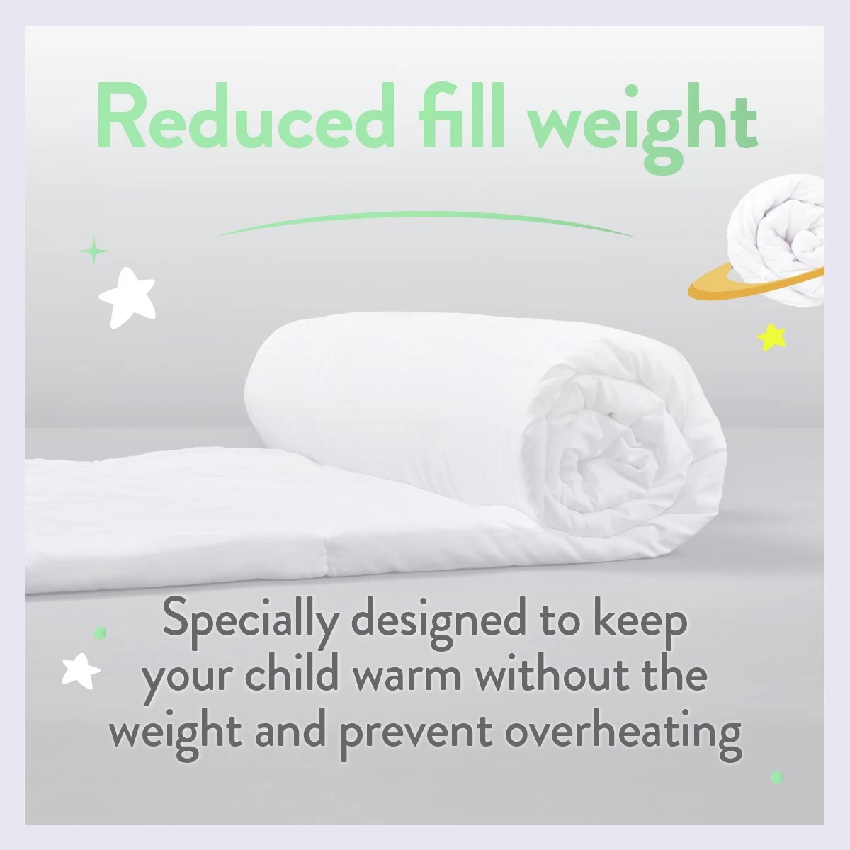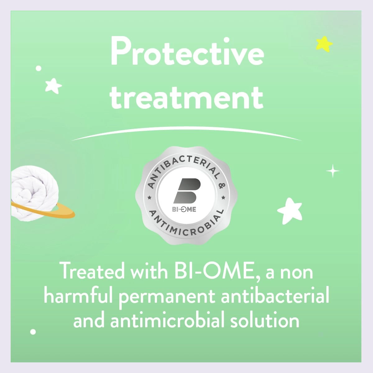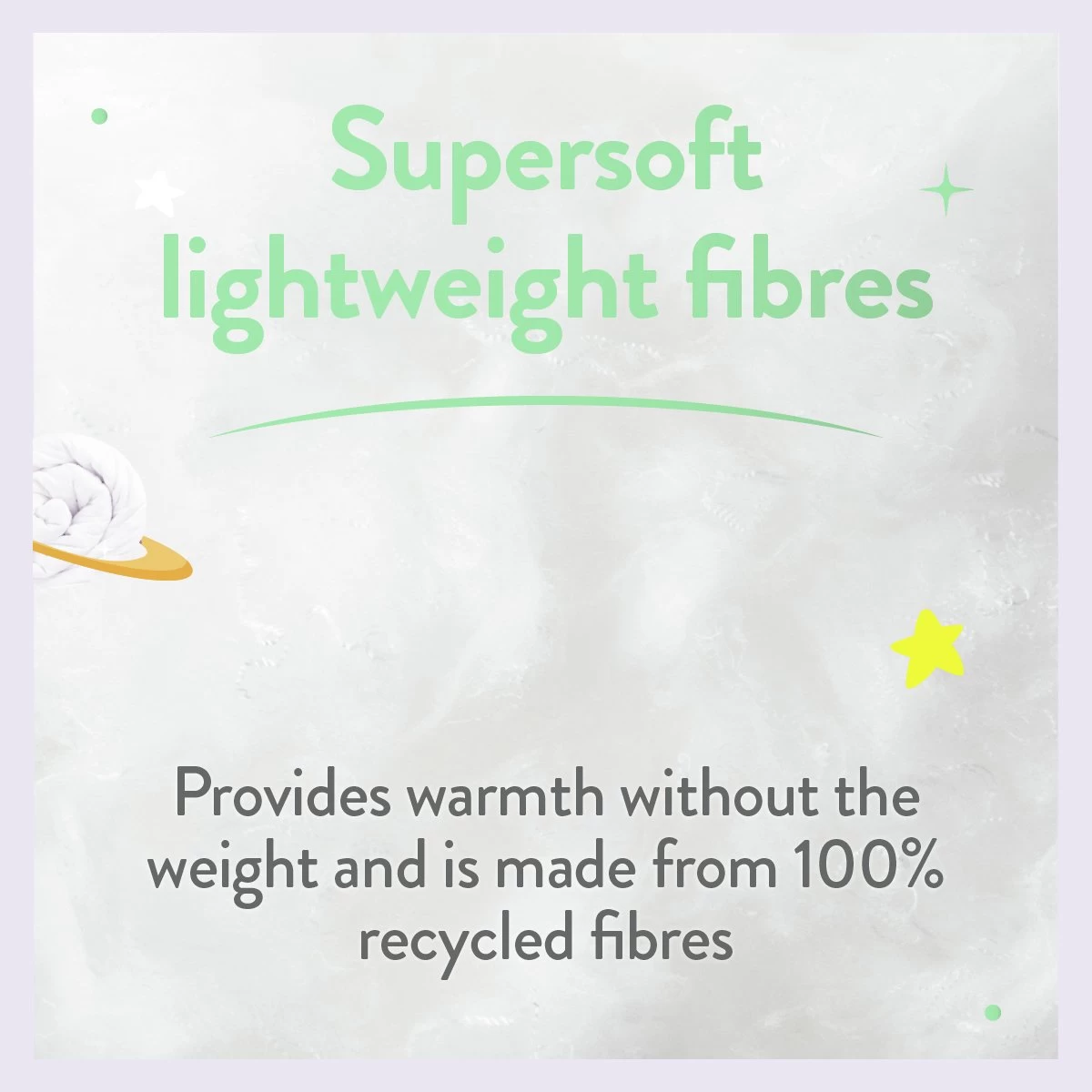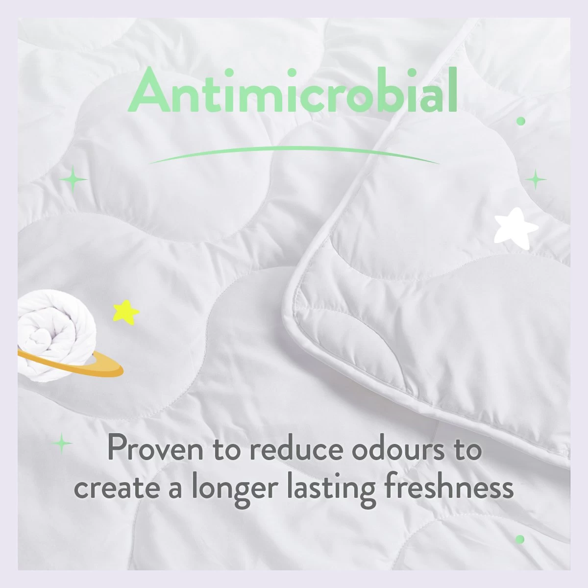 The Slumberdown Little Slumbers Anti Bacterial Cotton duvet has been designed for children. It is carefully formulated with a permanent, antibacterial, antimicrobial, non-harmful odour control treatment, BI-OME® which protects textiles from the build-up of dustmites and odour causing bacteria. The reduced fill ensures your little one won't overheat at night. Independently tested by experts, so your little ones can enjoy a comfier, fresher and healthier sleep space. What's more this is Easy Care so can be machine washed and tumble dried.