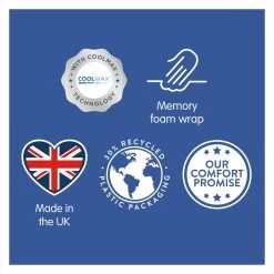 The Slumberdown CoolMax Memory Support Pillow offers maximum support for your head and neck. The memory foam wrap gently moulds around your head and neck which relieves pressure and minimise any neck or back pain. The soft CoolMax cover gently wicks away moisture ensuring your head is kept cool all night. The result is a pillow that is both supportive, cool and wonderfully comfortable. Made in the UK.