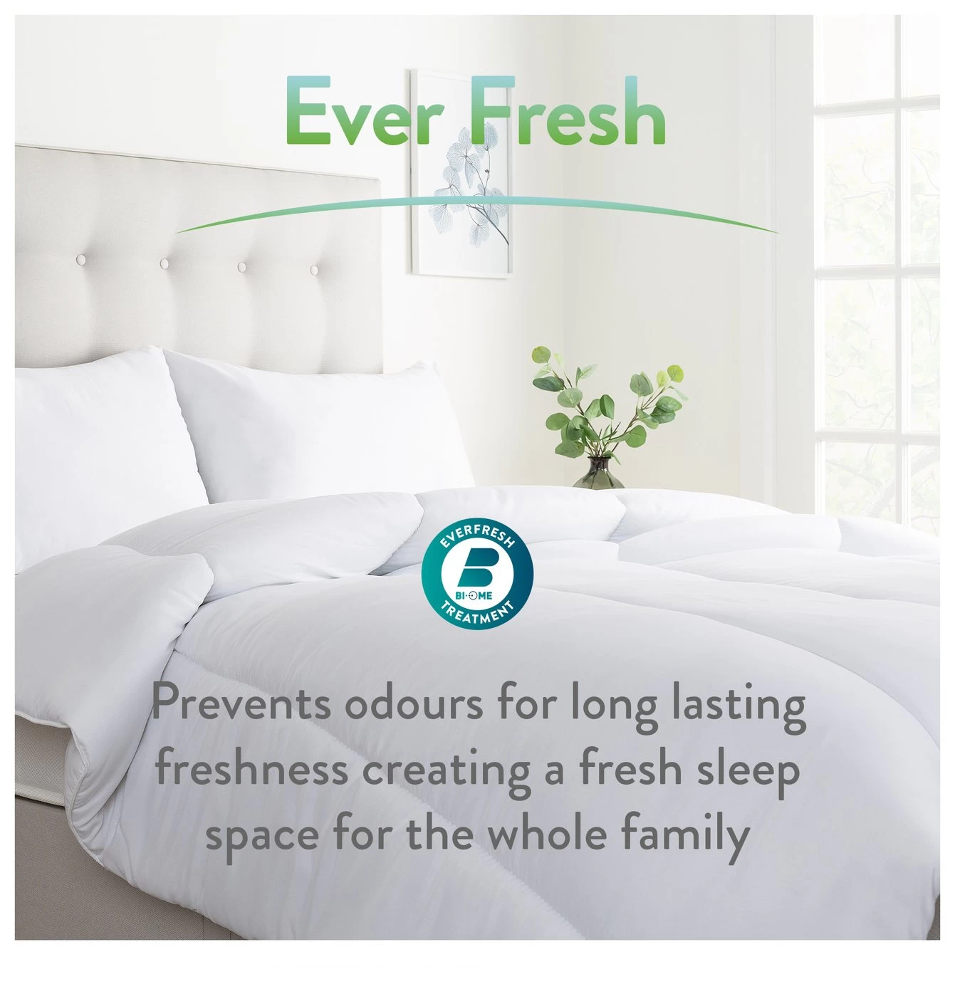 At Slumberdown, we believe everybody deserves a better night sleep. The Slumberdown Ever-Fresh 10.5 Tog Duvet range has been created especially for all year round use. Soft touch cover is designed to provide protection against the build up & cross contamination of harmful, odour causing bacteria & allergens, so you can have a fresh & healthy sleep space. The light & lofty recycled fibre provide optimum level of warmth, ensuring you have a Good Nights Sleep. What's more the product is Easy Care which means it's machine washable.