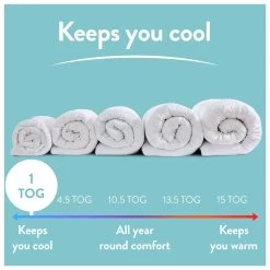 At Slumberdown, we believe everybody deserves a better night sleep. The Slumberdown Light and Cool 1 Tog duvet is superlight making it ideal for Summer nights or for those that like to be cooler in bed. What's more, the product is Easy Care which means its machine washable and can be tumble dried.