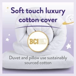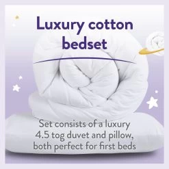 The Slumberdown Allergy Protection bedset has been created for children. This lovey soft touch cotton duvet is 4.5 Tog which is ideal for children as they tend to overheat quicker. The pillow has the same soft touch cotton over and a reduced fill to ensure it provides the right support for smaller heads and necks. Due to its unique filling this product has Allergy UK's seal of approval, which is awarded to products that have been tested to very high standards by leading allergy specialists, providing asthma, allergy and dustmite protection.