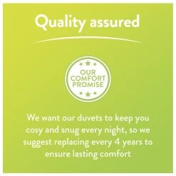 At Slumberdown, we believe everybody deserves a better night sleep. The Slumberdown Spring 7.5 Tog Duvet duvet is lightweight making it ideal for transitioning between the colder and warmer nights. The product has our unique smart stitch premium finish which gives a square corner making it easier to make your bed. What's more, the product is Easy Care which means its machine washable and can be tumble dried.
