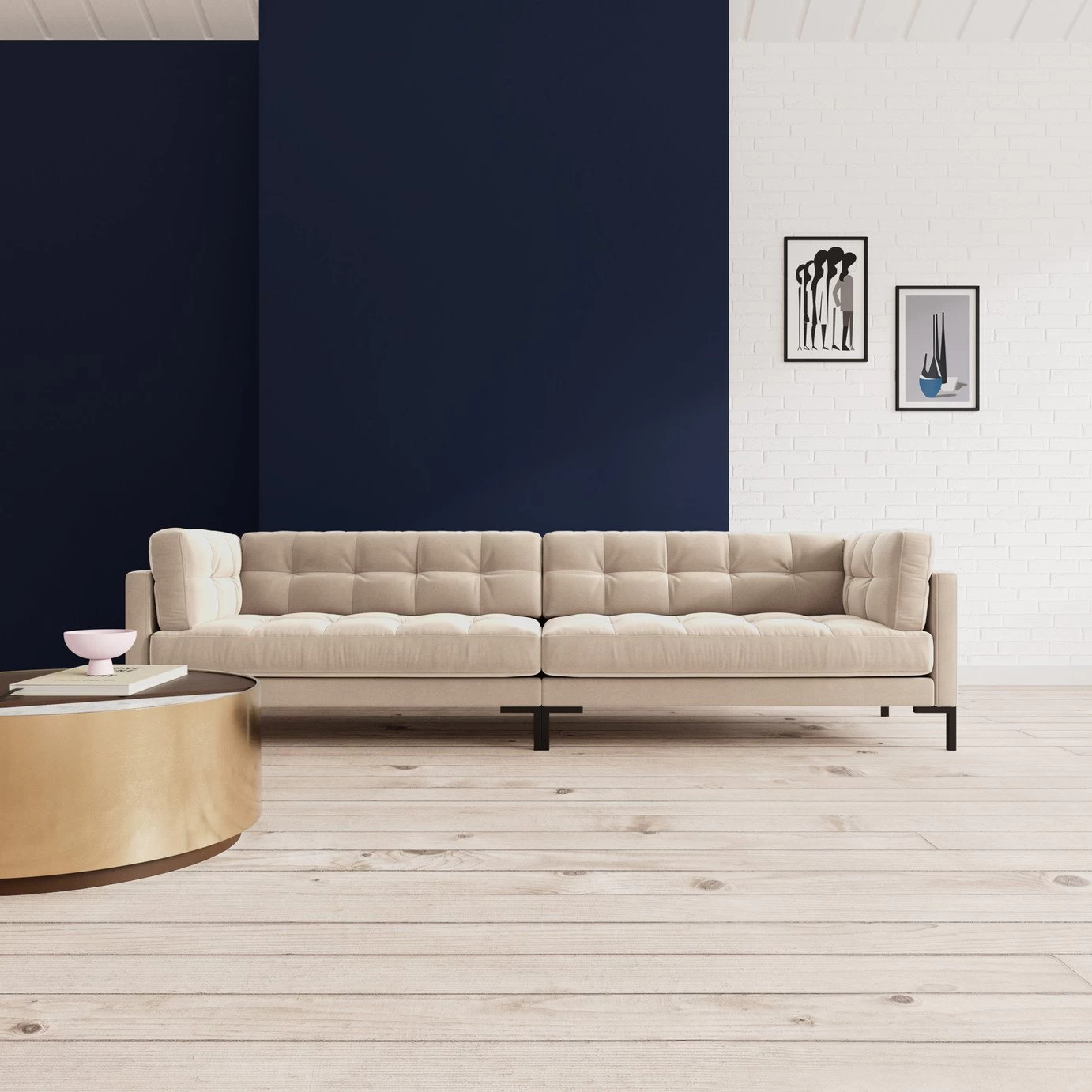 The Landau four-seater is your partner in design, every fibre-topped cushion on its beautiful body stitched by hand over a period of days. A simple, low-slung frame paves way for such mid-century detailing to really shine while a solo seat cushion means no more lost phones and fewer crevices for runaway crumbs to escape it.