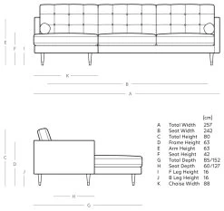 - Longer seating area width between arms: 257cm.