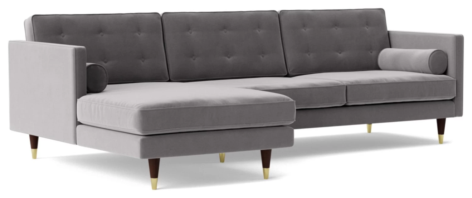 Button-backed, brass-capped and stacked full of character – we like the Porto. We like it a lot. Inspired by the opulent casino lounges of 1950s Las Vegas, the bolster cushions are what define this Mid-Century piece. This corner sofa's a winner, baby.